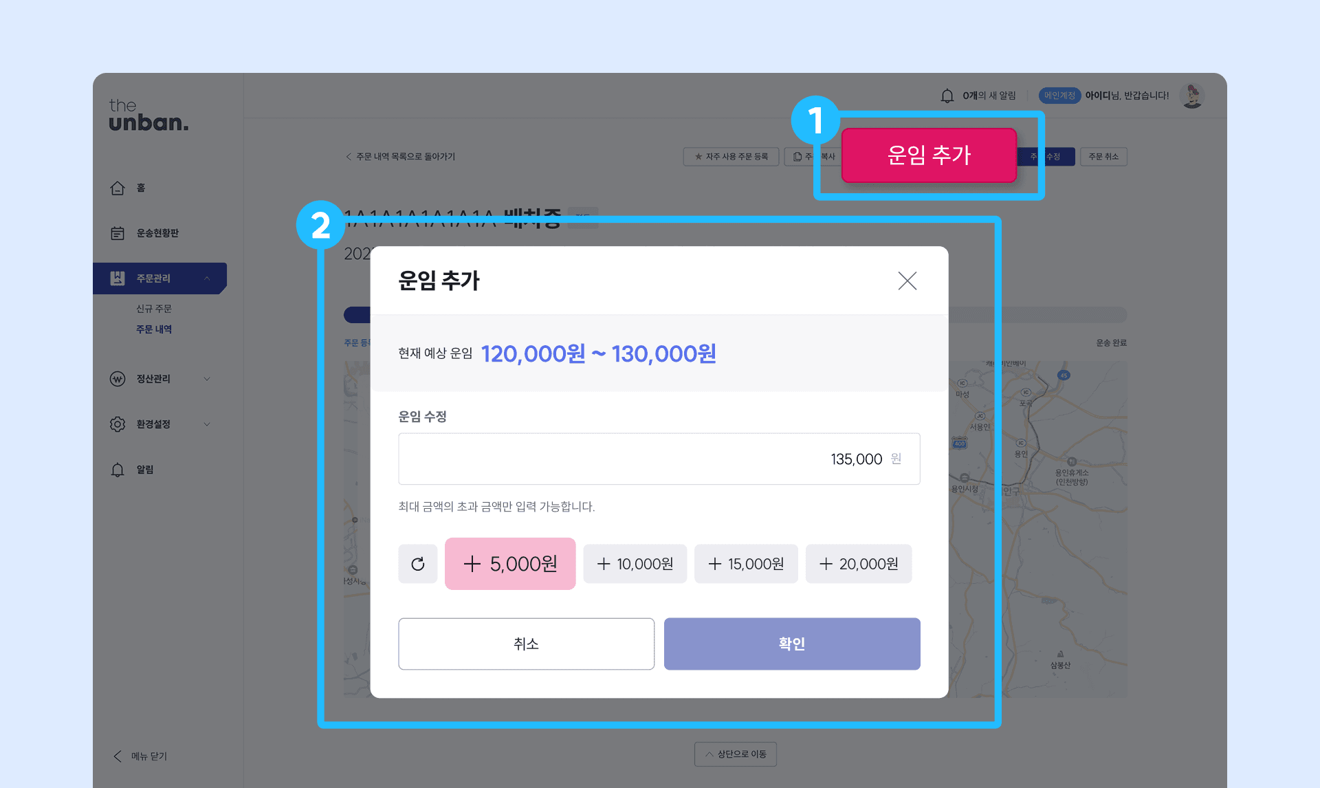 예상 운임 최대 금액의 200%까지 추가할 수 있고, 100원 단위로 설정할 수 있어요.